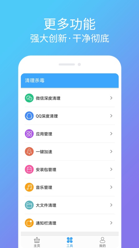 深度清理利用强大的文件扫描清理引擎,彻底清理深处的垃圾文件,为社交软件瘦身。