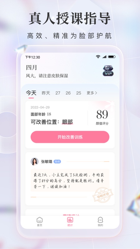 魔镜空间:APP提供拍照记录的功能,每次训练结束,大家可以召唤魔镜,记录自己变化的瞬间,面部改善是细微的,只有每天记录,才能发现自己的改变,更好的坚持下去。