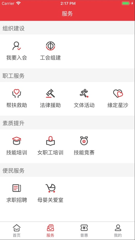 星工娘家人APP为职工提供了丰富多样的功能。涵盖入会服务,方便职工加入工会;支持工会组建相关操作。在权益保障方面,有法律援助服务。还有文体活动板块,职工能参与各类文体活动。技能培训与技能竞赛功能助力职工提升自身技能。资讯阅读板块让职工获取相关资讯。同时具备婚恋交友功能,为职工搭建交友平台。求职招聘服务为职工提供就业相关信息。普惠服务则为职工带来更多实惠福利。