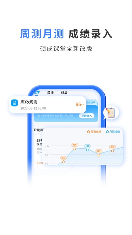 班级: 支持班级内学生课程表查询,课程学习,在线做作业,周测,月测,查看讲义,请假及在线答疑;