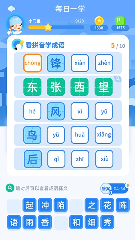 玩法多样,从入门级的看图猜成语到挑战脑力的成语接龙,满足不同用户的学习需求,能循序渐进地提高用户对成语的掌握程度。通过多种有趣方式丰富成语词库,使学习过程不再枯燥。