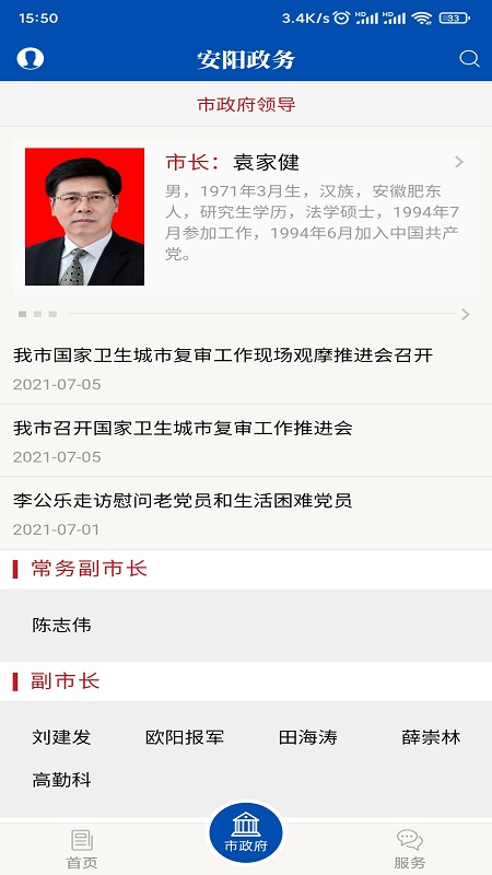 安阳市政府网客户端开通了要闻咨询、法规文件、政策解读、部门动态、公告公示等栏目。能够权威发布安阳市政府重大决策部署和重要政策文件,还会发布安阳市政府领导同志重要会议、活动等政务信息。同时,该客户端面向社会提供与政府业务相关的服务。