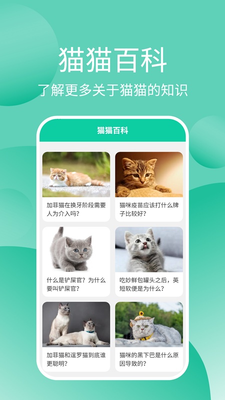 【猫猫百科】帮助用户学习分清各类猫猫的长相,了解相关猫咪知识,使用户正确认识喵星人,明白宠物生活需求。