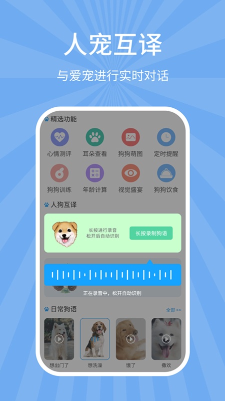 帮助用户解决与宠物交流时的困惑,理解爱宠需求,让爱宠更亲近自己。