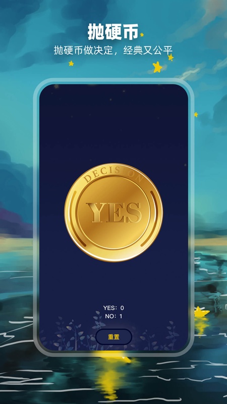 5、抛硬币:YES、NO轻松选择。			功能特色