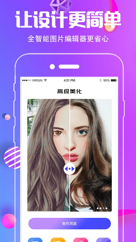 操作简单,无需掌握设计技能和复杂的PS软件,普通用户也能轻松上手。功能强大且全面,涵盖了抠图、图像美化、变老相机等多种实用功能,满足用户不同的图片处理需求。