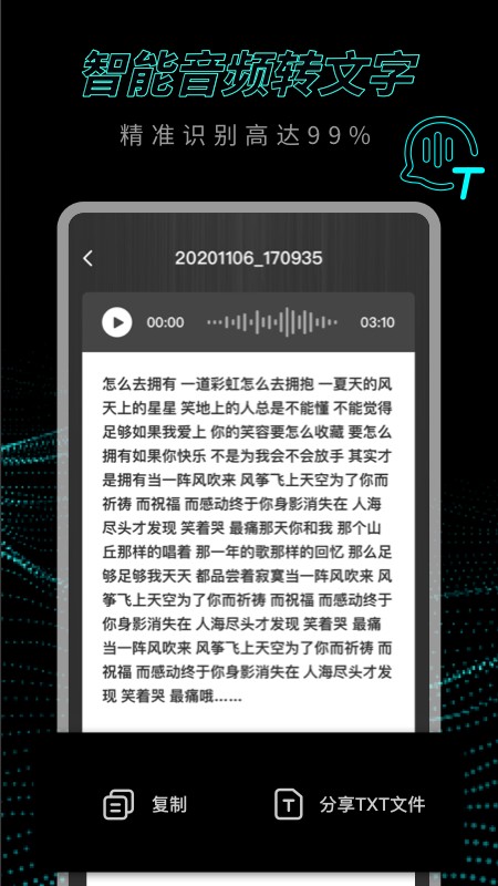 在需要录音的场合,如采访、会议、课程讲座等,打开应用即可进行随身录音。若在录音过程中需要暂停,可随时操作。想要听取录音时能随心听。若需将录音内容转换为文字,使用录音转文字功能,通过AI转写即可实现。完成录音或转写后,若要分享,可通过一键分享功能,将文字、TXT文件或录音以多种格式导出分享到不同平台。对于录制的音频,还能进行高效管理,一键编辑命名以便查找。