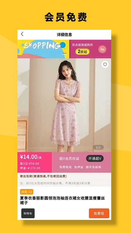 衣点租APP是一款共享服装类App,于2019年正式上线。它主要提供衣物租用服务,同时支持用户闲置交易。用户可通过出售或出租等方式出让自有闲置物品,使闲置物品获得变现能力。会员享有多种专享权益,包括低至99元/月的限时优惠、精选品牌且保证正品、涵盖更多品类以满足日常使用场景、顺丰往返包邮且可一键预约、可按天租用无需会员费或包年租用、商城物品2折起且满59包邮。