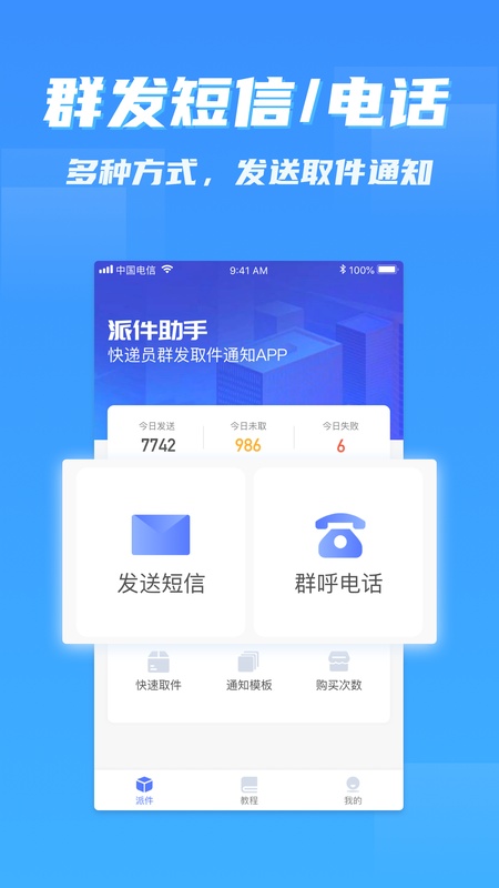 高效通知,一分钟通知上百人,极大提高派件效率。