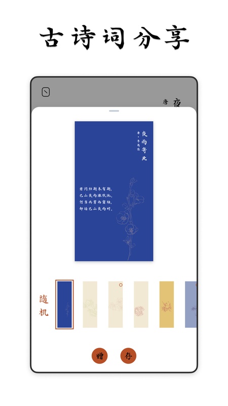 具备轻松分享功能,用户可一键将优美诗词分享给好朋友。