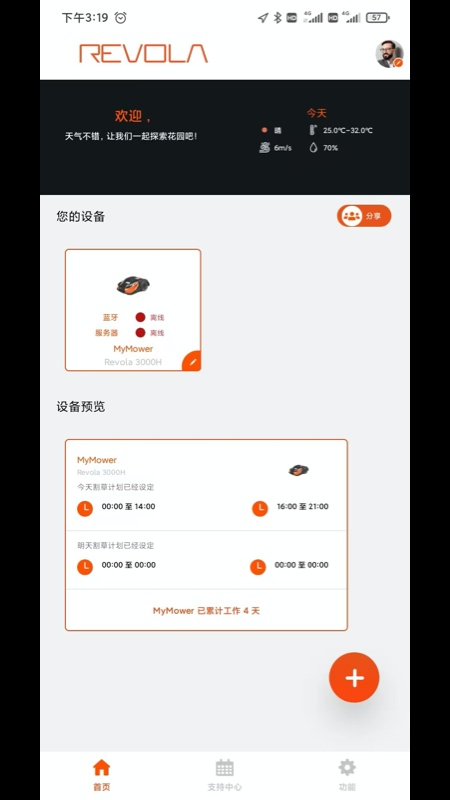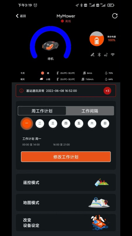 通过 WiFi/4G 技术支持,可随时监控割草机,能通过移动设备轻松查看割草机状态、割草完整性,还可根据意愿更改割草机设置、工作时间表。