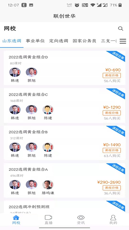 公务员、鲁考(山东省公务员考试)、选调、事业单位、教师招考、教师资格证、遴选公选、三支一扶、银行招考、军转干、国企招考等各类录用考试命题研究、考试培训、教辅资料、网校、电子商务等于一体的综合性的公职教育培训应用产品。 功能特色