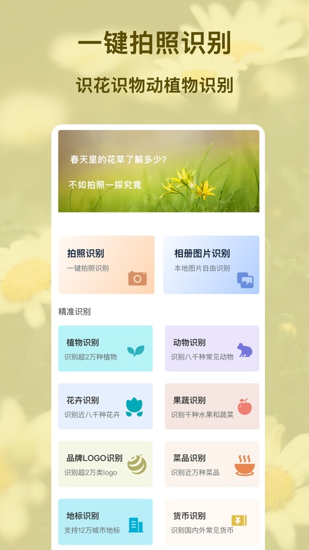 识别超过2万种常见植物和近8千种花卉,识别植物名称及百科信息