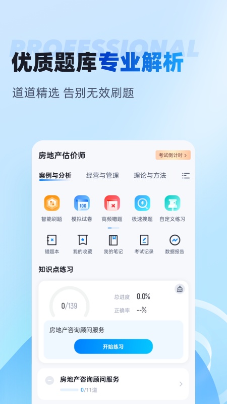 房地产估价师题库内含考点练习,全国通用卷以及地区卷模拟练习,以及按照固定考试比重的随机式的抽题的真题考场,成绩单实时记录考试数据,一点一滴的反馈考生近期学习状态以及自我正确率的提升,大大的给予考生通过考试的信心。 软件特点