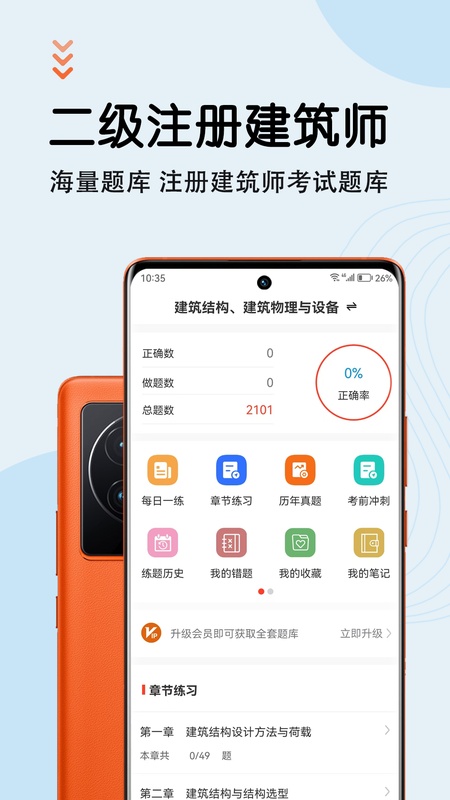 该APP为二级注册建筑师智题库,是建筑师考试宝典。涵盖二级注册建造师考试知识点总结、历年真题、模拟试题等题库,可让用户随时随地练习。具体功能如下: