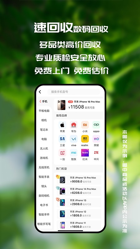 品类丰富:回收品类涵盖手机、笔记本电脑、平板,相机等各种数码电子产品