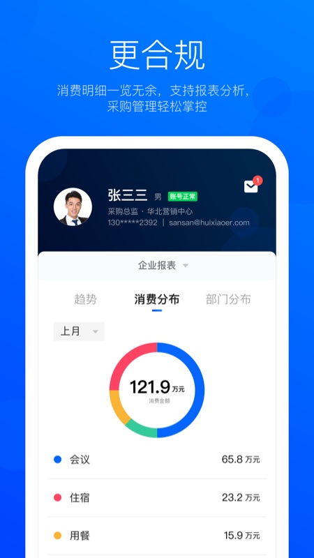 -更合规:30分钟完成在线酒店竞标,采购全流程每个节点都可在线上留痕。消费明细一览无余,支持报表分析,采购管理轻松掌控。