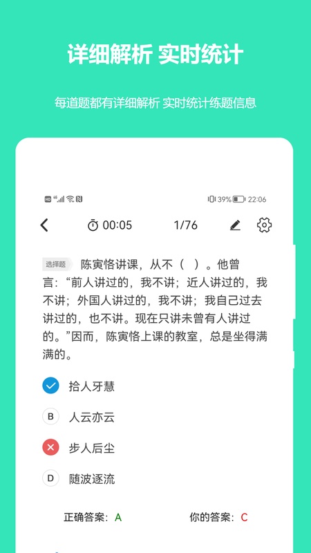 错题复习:系统自动记录用户错题,可针对错题生成练习
