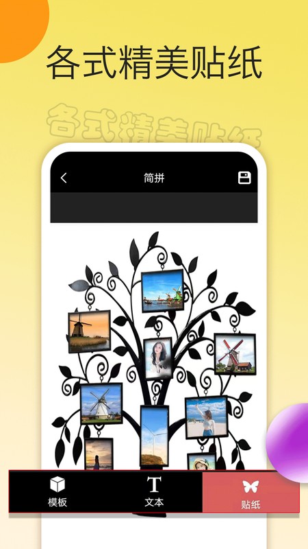3D照片拼贴画功能独具特色,能将普通照片变成精彩的3D拼贴效果,还可添加炫彩贴纸和炫酷文字,让照片更具个性。