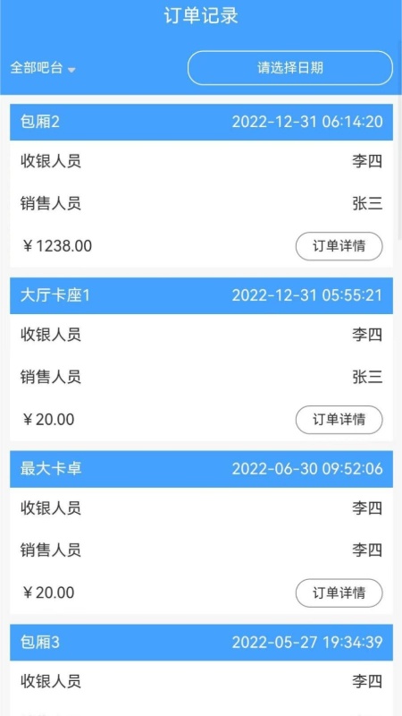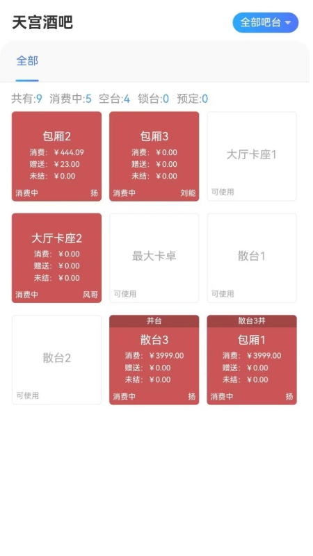 4、新增台号数据统计与吧台状态显示