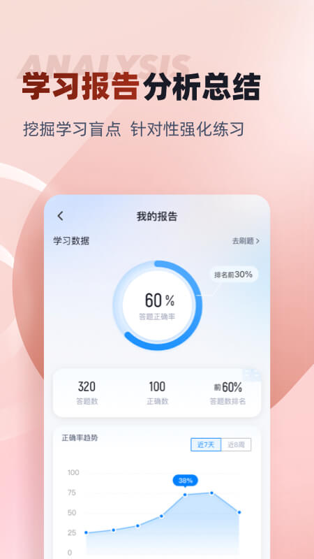以全真模拟试题为基础,为考生营造真实考试氛围。搜题功能强大且形式多样,方便考生快速解决疑问。模拟考试选择灵活,能满足不同考生的练习需求。刷题模式多样,涵盖多种类型练习和随机抽题考场,还能通过成绩单反馈学习状态和正确率提升情况。