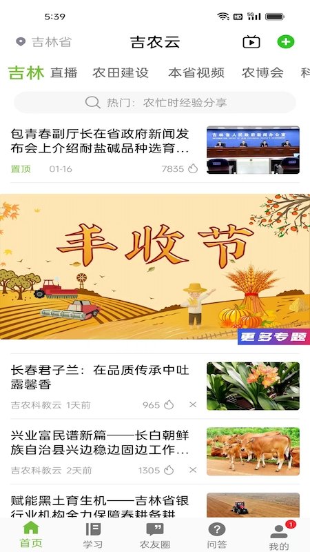 吉农云是定位于高素质农民培育信息化、农技推广线上服务化的移动互联网平台。平台由吉林省农业农村厅主导建设开发,提供的服务包括在线学习、农技问答、群组交流、专家社区,致力于作为高素质农民培育及农技推广项目的线上有效补充。 吉农云APP功能