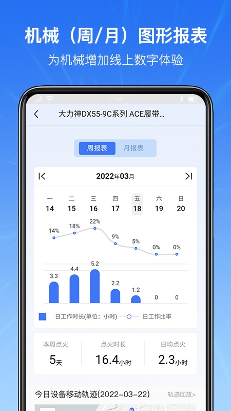 工匠人机械智联为工程机械使用者提供了清晰可见的机械使用状态信息。同时具备机械运行数据监测以及电子围栏等多种实用功能。
