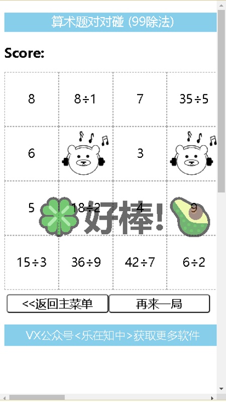 快乐学数学, 就从娃娃使用小学数学题对对碰开始! 软件功能
