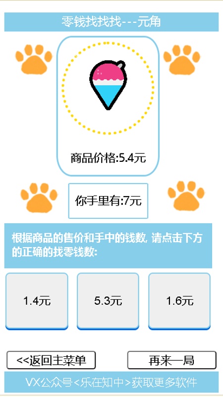 目前小学数学题对对碰软件涵盖了10以内的加法,减法,除法和乘法, 100以内的加法和减法,10以内的连加连减和100以内的连加连减。更能认识钟表时间和练习买东西找零钱, 真正做到放松地学习数学,不再对数学有畏惧!