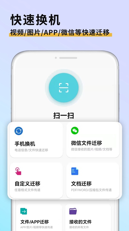 该软件具备手机换机搬家迁移功能,能实现数据的顺利迁移。用户可进行最近文件的管理查看,能够查看最近下载的视频和图片文件。支持视频投屏,可将手机上的图片、视频、音乐等文件轻松投屏到电视大屏上观看播放。还能对最近从微信、QQ、浏览器等下载的文件进行管理。