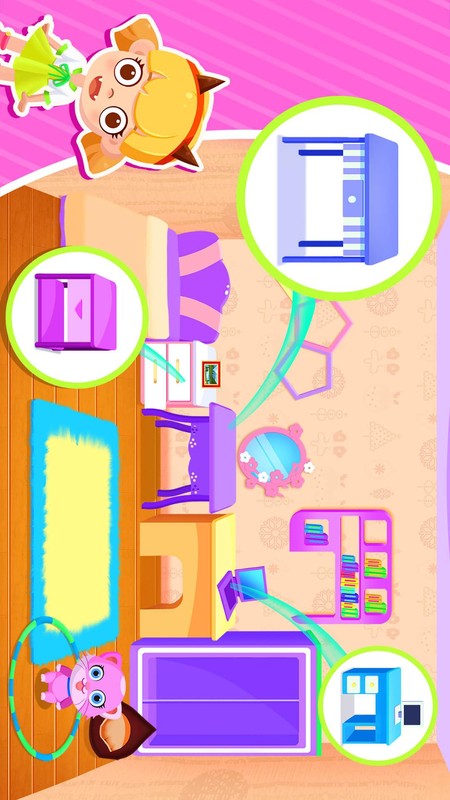 让玩家成为专业的室内设计师,为6个可爱的娃娃装饰房屋。