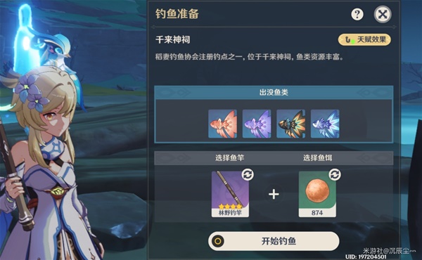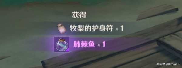 将钓鱼点中肺棘鱼钓起,即可获得牧梨的护身符。